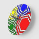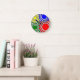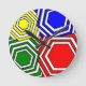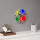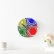 Este reloj tiene un diseño Bauhaus de hexágonos concéntricos superpuestos en rojo, amarillo, azul y verde.