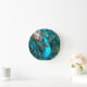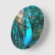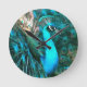 Reloj Redondo Mediano Vibrante Pavo Real Azul Con Cola Avalada