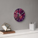 Reloj Redondo Mediano Vino de Borgoña Rosa Floral Púrpura Glam Moderno