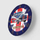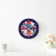Este dibujo digital presenta uno de los símbolos más icónicos de Londres, Reino Unido: el vintage taxi negro con el Union Jack en el fondo. Nota: el aspecto metálico dorado que se simula en la obra de arte. No se utilizará ningún metalizado real para imprimir este reloj de pared.