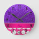 Reloj Redondo Mediano Voleiboles de neón púrpuras del purpurina de las