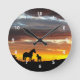 Reloj Redondo Mediano Wild Mustang Mare and Foal Silhouette With Sunset