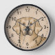 El personalizado original de Destei ilustracion de un lindo abrigo amarillo color Golden Retriever cría la cabeza de un perro cerca de la cabeza. El color de fondo es beige claro con una textura decorativa. La textura puede eliminarse y el color de fondo puede cambiarse a cualquier otro color, si así lo desea. Las horas están marcadas con números. Las horas y los minutos se muestran con una cara de reloj punteada.