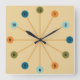 Diseño moderno de Starburst de los mediados de siglo en este reloj retro del estilo. Esquema de color a partir de los años 50 y 60s en este reloj retro kitschy fresco.