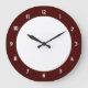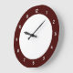 Números blancos con el guarnecido rojo Reloj de pared redonda.Este guarnecido rojo es intercambiable cuando lo convierte en un reloj cuadrado. Manténgalo con el fondo blanco o agregue un fondo de color. Añade tu foto o diseño favorito detrás de la imagen de recorte. La forma de hacerlo es asegurarse de que su foto se muestra debajo del recorte de la imagen en el lado derecho cuando la está personalizando.