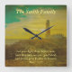 Reloj con la pintura de un hermoso faro con puesta de sol y verso de la Biblia: "Deja que tu luz brille ante los hombres, para que vean tus buenas obras y alaben a tu Padre en el cielo. Matt. 5:16" El texto es totalmente personalizable, así que agrega tu nombre familiar y verso favorito.