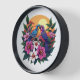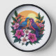 Reloj Vibrantes aves amorosas al atardecer con flores tr