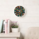 Es vibrante y llamativo, con un patrón paisajista colorido que da la impresión de estar tejido a partir de numerosas hilas de lana. La paleta de colores está compuesta por cuatro colores diferentes y vivos: amarillo, turquesa, azul oscuro y naranja. El uso del amarillo añade un elemento soleado y alegre al diseño, evocando sentimientos de calidez y felicidad. El turquesa, con sus propiedades frescas y tranquilizantes, contrasta maravillosamente con el amarillo, creando un efecto visual equilibrado y armonioso. El azul oscuro introduce profundidad y riqueza en el patrón, anclándolo y proporcionando una sensación de estabilidad. La adición de naranja es una elección audaz, infundiendo energía y vitalidad en el diseño. Sirve como un llamativo color de acento, llamando la atención sobre elementos específicos dentro del patrón paisley. En general, el diseño es una deliciosa combinación de colores y patrones, con un ambiente animado y lúdico, manteniendo al mismo tiempo una sensación de sofisticación y calidez. Es perfecto para añadir un toque de fantasía y creatividad a varios productos y ambientes, desde textiles y moda hasta decoración interior y obras de arte.