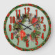 Una brillante obra de arte vintage con una corona de Navidades en un reloj de pared. Colóquelo sobre la repisa de la chimenea o dáselos un regalo. Este reloj sería perfecto para los Navidades, para los que quieran hacer una tienda temática, o para pasar un rato cerca de un centro comercial de Santa por ese toque extra de alegría para las vacaciones. Disponible en dos tamaños de reloj redondo, o un reloj cuadrado. Copyright Scarebaby Design.