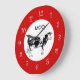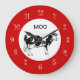 Cuidados relojes de pared de la cocina de vaca con la imagen de una vaca vectorial en blanco y negro en la cara del reloj en este diseño decorativo de pared de la decoración de reloj para su cocina, baño, o cualquier habitación en su casa que usted quiera agregar un toque de carácter y estilo. Los colores son rojo, negro y blanco.