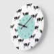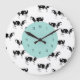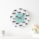 Cuidados relojes de pared de cocina de vaca con vectores de vacas negras y blancas en toda la cara del reloj en este decorativo diseño de relojes de decoración de pared para su cocina, baño, o cualquier habitación en su casa que usted quiera agregar un toque de carácter y estilo. Los colores son blanco, negro y beige.