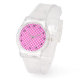 Vigila a los chicas que les gusta el rosa. Estos relojes de diseño presentan un patrón de tablero de ajedrez rosa con números negros.