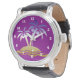 Si te gusta la comodidad de la playa, te encantarán estos relojes de diseño con un diseño colorido de la playa de palmeras de fondo violeta.