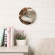Los relojes de la pared de la cocina temática del café con la foto de una taza de café antigua y un platillo en la cara del reloj en esta pared decorada con temática de java diseño de reloj para una cocina, habitación familiar o salón. Excelente regalo para bebedores de café o té.