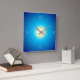 Un reloj bastante simple en azul con un centro de limón. Este diseño impreso brilla, lo que da la impresión de una luz detrás. Los números romanos completan este diseño. Nota: este no es un producto LED