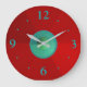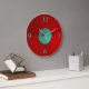 Un reloj simple en rojo/marrón con un centro de círculo azul verdoso acuático. Colores complementarios que incluyen números para combinar. Disponible en formas cuadradas y redondas.