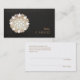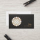 Elegante logo de loto blanco en imagen digital de fondo de lino negro. Un cupón de descuento elegante y sofisticado perfecto para spas, cosmetólogos, esteticistas, boutiques, diseñadores, consultores de cabello y belleza y más.