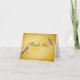 Hermosas libélulas púrpuras en un fondo dorado vintage se destacan en esta elegante tarjeta de agradecimiento.