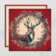 Aquí hay una hermosa tarjeta navideña con un reno de Navidad rodeado de una corona de Navidad. Esta es una ilustración pintada en rojo, crema y verde. Es una tarjeta de Navidad linda para usar como invitación, tarjeta de Navidad o para dar con un regalo.