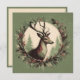 Esta encantadora tarjeta de felicitación navideña de 5,25" x 5,25" captura la magia y el asombro de la temporada con una hermosa ilustración de un reno de Navidad ubicado dentro de un borde circular pintado. Con delicados detalles y elegancia invernal, la escena presenta al reno de Santa parado orgullosamente con cuernos elegantes y ojos suaves, enmarcado por un fondo nevado de pinos cubiertos de blanco. La composición circular agrega un toque clásico y atemporal, mientras que el bosque de hoja perenne en el fondo evoca la quietud pacífica de una mañana de invierno. La paleta de colores suaves y el estilo pictórico dan a la imagen un aspecto hermoso y artesanal que combina el encanto rústico con la belleza estacional refinada. Ya sea que esté enviando saludos navideños sinceros o buscando el toque perfecto para un regalo de Navidad