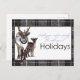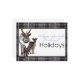 Esta encantadora tarjeta de saludo navideña presenta un reno y un cervatillo ilustrados a mano que están juntos contra un fondo blanco limpio, enmarcados por un borde de cuadros negro y gris elegante. La escritura elegante y la tipografía moderna transmiten el sentido mensaje, “Deseando a usted y a su familia las Navidades más mágicas”. Perfecta para difundir la alegría invernal, esta tarjeta combina el calor rústico del bosque con un diseño contemporáneo para un toque festivo y acogedor.