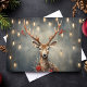 Esta tarjeta de Navidad de reno rústico presenta un reno bellamente ilustrado adornado con guirnaldas festivas y rodeado de luces de Edison brillantes. Las luces cálidas de inspiración vintage añaden un toque acogedor y encantador al diseño, lo que la convierte en la tarjeta perfecta para aquellos que aman la naturaleza y la estética navideña rústica. Comparte la belleza tranquila de la temporada con esta tarjeta de Navidad única y elegante.