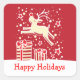 Desearía unas felices fiestas navideñas con este lindo salto de reno rojo feliz etiqueta de etiqueta de etiqueta de etiqueta de etiqueta de fiestas. Ideal para sellar Navidad gracias regalos o tarjetas. Diseñado exclusivamente por Sarah Trett.