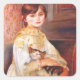 Renoir Chica con pegatinas gatos. Óleo sobre lienzo de 1887. Esta hermosa pintura se completó durante el rechazo del impresionismo de Pierre-Auguste Renoir. Child with Cat presenta a un joven chica bonito con pelo castaño que sostiene en su regazo a un gato con concha de tortuga dormido. El chica lleva un vestido blanco con bordado dorado y sus ojos azules suaves. Un bonito regalo para los aficionados a Renoir, a las pinturas de gatos y al arte francés.