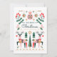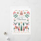 Un encantador diseño simétrico con dos renos adornados con patrones geométricos, rodeados de pequeños árboles y adornos navideños. El uso de tonos rosa, verde y rojo crea una escena navideña caprichosa de inspiración nórdica con elementos naturalistas estilizados y formas festivas tradicionales.