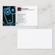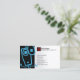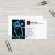 Un lindo y genial rostro de robot geeky delineado en cian te asoma en el lado izquierdo de esta tarjeta de visita, sobre un fondo negro azabache, mientras tu empresa y detalles personales aparecen a la derecha sobre un gradiente blanco. El diseño sencillo pero informal hace de esta tarjeta de visita perfecta para los trabajadores independientes de TI o empresas e industrias relacionadas con la informática y la técnica.
