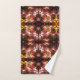 Espejo y repetición de mosaicos triangulares de color rojo oscuro y salmón que, en una parte, el mismo dibujo (rotado o reflejado) parece tener las líneas en relieve alto y en otra parte parece estar en bajo relieve.