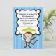 ¿¿¿Quién es el graduado de kindergarten o de preescolar??? ¡¡Tu pequeño mono!! Esta adorable invitación tiene un fondo de rayas azules brillantes. Hay una etiqueta de centro blanco delineada en negro con pequeños puntos blancos. En la parte inferior de la invitación hay un mono lindo con un diploma. El mono tiene un gorro de graduación verde lima brillante en su cabeza. Personalícelo con información fiesta y estás listo para ir. Vea nuestros muchos otros diseños y colores en nuestra tienda. ©Riefka