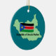 Celebre nuestra más nueva nación con un ornamento del mapa y de la bandera de Sudán del sur. Adorne las características el mapa del esquema de Sudán del sur y de la bandera sudanesa. Las palabras son "la República de Sudán del sur". El color de fondo es un verde oscuro para felicitar la bandera y para trazar colores. El dorso da la fecha de la independencia de los países. Esta fecha y acontecimiento es completamente adaptables así que usted puede registrar cualquier otro acontecimiento importante o nombrarle desear.