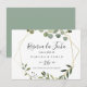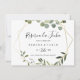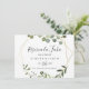 Esta boda geométrica tropical horizontal reserva la fetcha salvo la fecha es perfecta para un boda español moderno. El diseño está decorado con hermosas hojas verdes pintadas a mano, adornando un marco geométrico dorado.