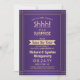 ¿Puedes guardar un secreto? Invita a familiares y amigos a una elegante y emocionante fiesta sorpresa de aniversario con invitaciones personalizadas de color púrpura y dorado para guardar la fecha. La imagen y todo el texto de esta plantilla son fáciles de personalizar, incluyendo el mensaje que dice "¡Shhh! Es una SORPRESA". El diseño cuenta con un borde moderno a rayas sobre un fondo ombre púrpura, una foto de su elección, tipografía art déco vintage clásica y caligrafía con estilo. Tenga en cuenta que el dorado es un color impreso, no es lámina metálica. Felicitaciones y Feliz Aniversario a la pareja en su celebración de aniversario.