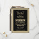 ¿Puedes guardar un secreto? Invita a familiares y amigos a una elegante y emocionante fiesta sorpresa de aniversario con invitaciones personalizadas en negro y dorado para guardar la fecha. La imagen y todo el texto de esta plantilla son fáciles de personalizar, incluyendo el mensaje que dice "¡Shhh! Es una SORPRESA". El diseño presenta un borde moderno a rayas, una foto de su elección, tipografía clásica vintage art déco y caligrafía con estilo. Tenga en cuenta que el dorado es un color impreso, no es lámina metálica. Felicitaciones y Feliz Aniversario a la pareja en su celebración de aniversario.