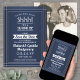 ¿Puedes guardar un secreto? Invita a familiares y amigos a una elegante y emocionante fiesta sorpresa de aniversario con invitaciones personalizadas de foto azul marino y blanco. La imagen y todo el texto de esta plantilla son fáciles de personalizar, incluyendo el mensaje que dice "¡Shhh! Es una SORPRESA". El diseño presenta un borde moderno a rayas sobre un fondo de ombre azul marino, una foto de su elección, tipografía clásica vintage art déco y caligrafía con estilo. Felicitaciones y Feliz Aniversario a la pareja en su celebración de aniversario.