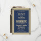 ¿Puedes guardar un secreto? Invita a familiares y amigos a una elegante y emocionante fiesta sorpresa de aniversario con invitaciones personalizadas de foto azul marino y dorado. La imagen y todo el texto de esta plantilla son fáciles de personalizar, incluyendo el mensaje que dice "¡Shhh! Es una SORPRESA". El diseño cuenta con un borde moderno a rayas, una foto de su elección, tipografía clásica vintage art déco y caligrafía elegante. Tenga en cuenta que el dorado es un color impreso, no es lámina metálica. Felicitaciones y Feliz Aniversario a la pareja en su celebración de aniversario.