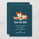 Guarda la tarjeta de fecha con un dibujo de 2 zorros rojos. Uno de pie sobre el otro tendido. Dibujado con acuarela.