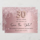 Una chica y de moda Guardar la tarjeta de fecha para un fiesta de 30 años. Fondo de gradiente rosa Rubor decorado con goteo y polvo de purpurinas rosados y falsos de plata. Personalice y agregue una fecha y un nombre/texto. El texto: Save the Date se escribe con un gran guión de estilo escrito a mano. Número 30 con un tipo de letra de estilo globo.