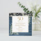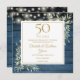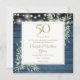 Con una delicada vegetación de color acuático y luces de cuerdas de bonito en un fondo de paneles de madera azul, esta moda rústica ahorra la invitación de aniversario puede ser personalizada con su información especial de celebración de 50 años. Diseñado por Thisisnotme©