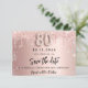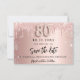 Una fiesta de guardar la fecha para una fiesta de cumpleaños número 80. Fondo de gradiente dorado Subió decorado con goteos de oro rosa y de plata falsa. Personalice y agregue una fecha y un nombre/texto. El texto: Save the Date se escribe con un gran guión de estilo con letras a mano y a la moda con guiones. Número 80 con un tipo de letra de estilo globo.