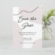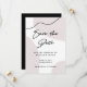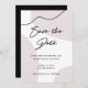 Estas tarjetas modernas minimalistas de ahorro de fecha de boda presentan un diseño chic de acuarela beige neutra en blanco, con una línea negra curva abstracta para un estilo añadido. La parte trasera de la tarjeta es un negro rico que enfatiza la sutileza del beige. La escritura a mano moderna y de tendencia completa esta apariencia elegante.