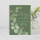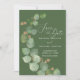 Boda moderna de las Fiestas Temáticas Save the Date cuenta con vegetación de eucalipto acuarela y tipografía romántica moderna de escritura, acompañada de letras serif tradicionales. El diseño se basa en un fondo verde oliva profundo y se acentúa con unas venas doradas elegantes y hojas en forma de corazón, mientras que el reverso es un sabio rústico/verde oliva. #SaveTheDate #Eucalyptus #ModernWedding
