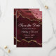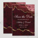 Tarjeta de Guardar la Fecha de Geoda de Ágata Mármol Burgundy y Dorado con Acuarela Moderna y Elegante