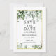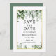 Moderna y elegante acuarela Ivy Greenery Boda Invitación de compromiso Save The Date Card incluye hiedra, helechos y hojas de salvia - Marco dorado, Sage Green Back