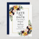Reserva La Fecha Acuarela Mezclada Floral Azul Oro Elegante