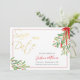 Comparte las noticias de tu próximo boda con estilo, con este moderno ahorre el diseño de fechas con un texto falso de guión de Relieve metalizado dorado y hermoso mistletoe de color rojo y verde. Perfecto para las vacaciones de los Navidades / invierno / diciembre o boda de enero! La parte posterior está disponible en varias opciones de color y todo el texto se personaliza fácilmente para que sea el suyo propio. Por favor, no dude en visitar mi tienda aquí en Zazzle para ver los otros artículos coincidentes / de coordinación y asegúrese de seguirme para actualizaciones de nuevos productos. ¡Gracias por su interés en SapphireDesigns!