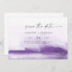 Esta moderna acuarela púrpura horizontal ahorra la tarjeta de fecha es perfecta para un elegante boda contemporáneo. La colección de diseño minimalista, clásico y elegante presenta trazos de pincel de color agua en tonos bonito.