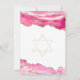 Agar purpurina de oro rosa y falso con una Estrella de David dorada decora esta elegante acuarela Bat Mitzvah Guardar la tarjeta de fecha. Este diseño está decorado con agate de mármol rosa, acentuado por un falso purpurina de oro. Los detalles de tu celebración pueden ser personalizados en una moderna caligrafía de gaux gold. La parte posterior de la tarjeta tiene una ágata que coincide con la estrella de david. Diseñado por Susan Coffey.
